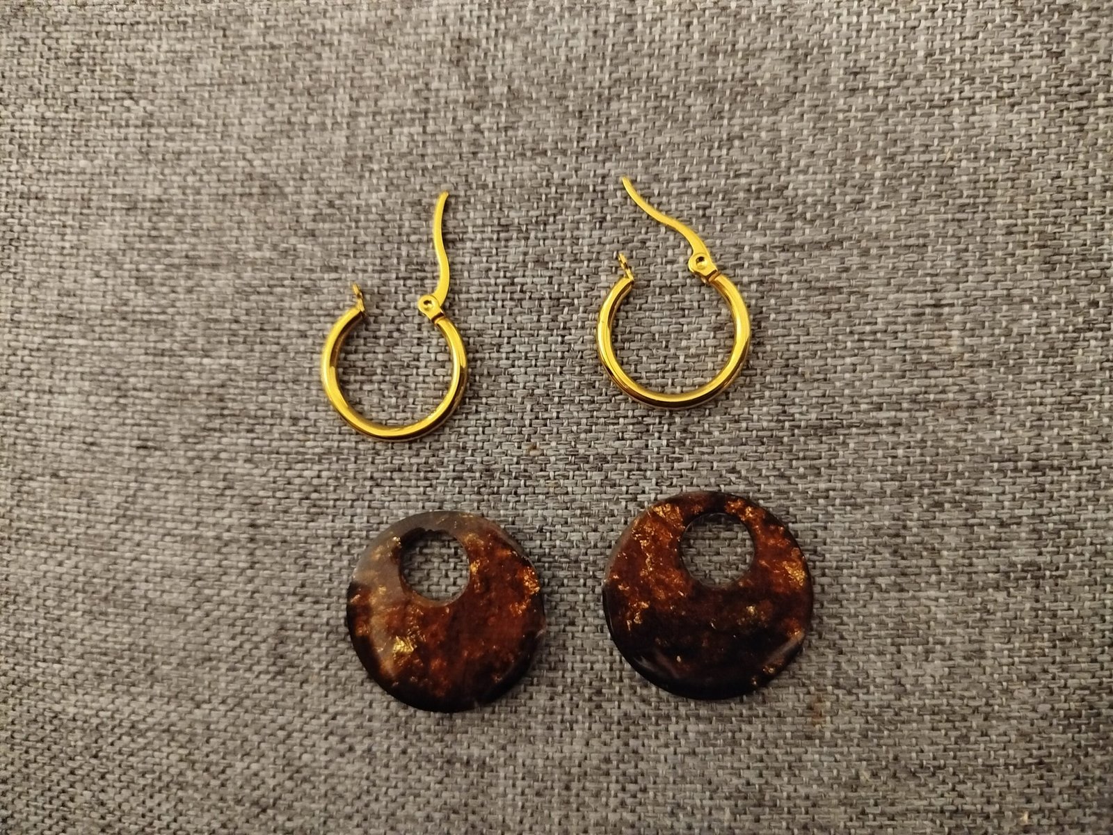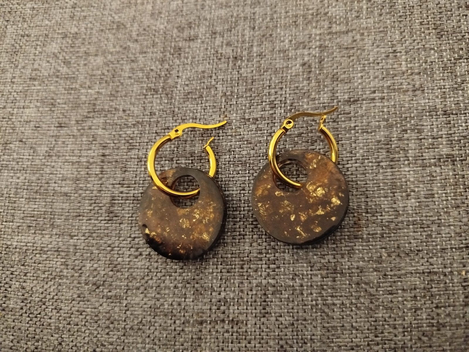 Boucles d’oreilles doré en acier inoxydable forme rondes en résine époxy coloris marron doré