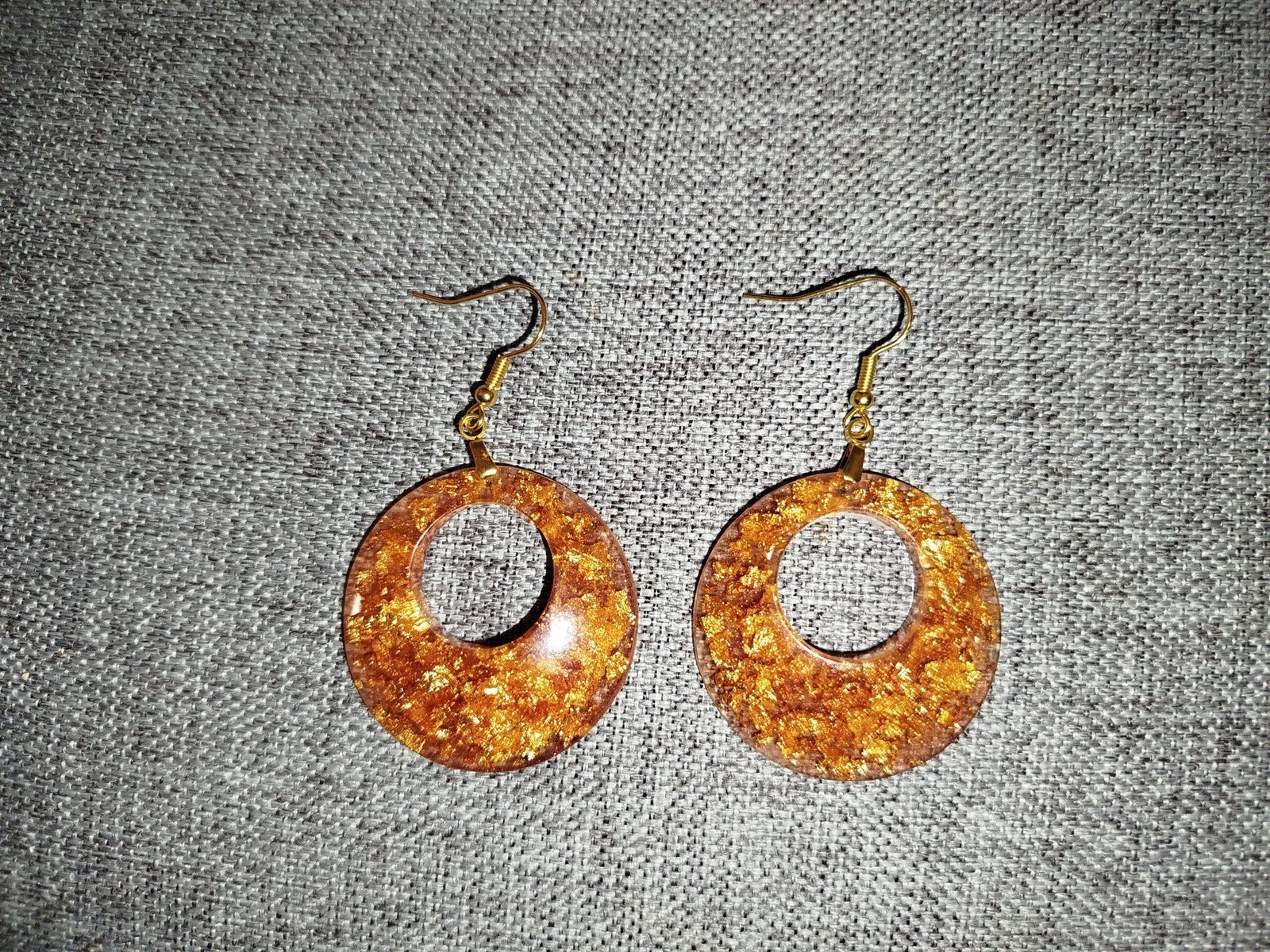 Accessoires : Boucles d’oreilles doré en acier inoxydable forme ronde en résine époxy coloris rouille or