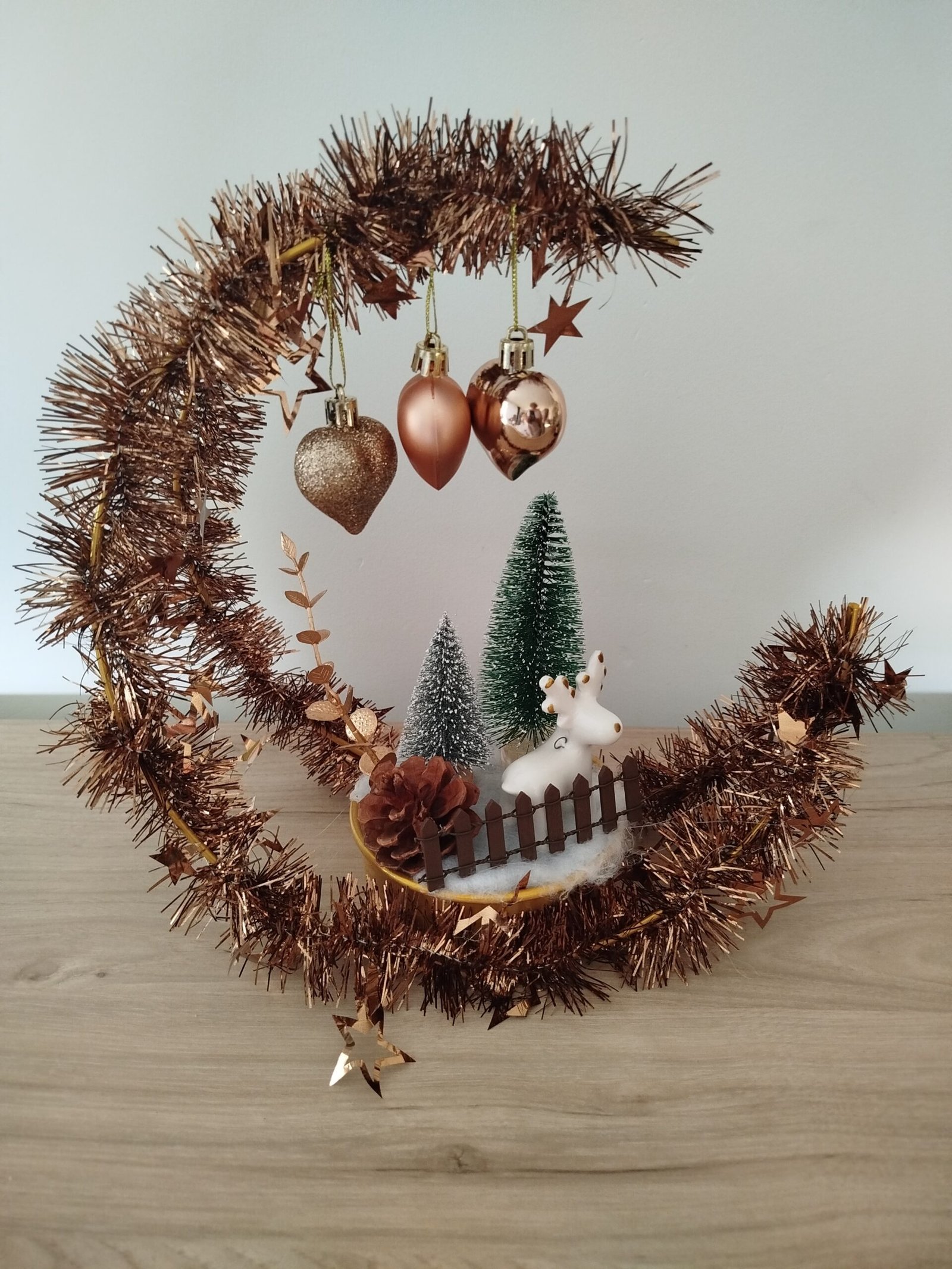 Centre de table LUNE diam.30 cm avec boules dorées et déco de Noël pour décorer votre centre de table