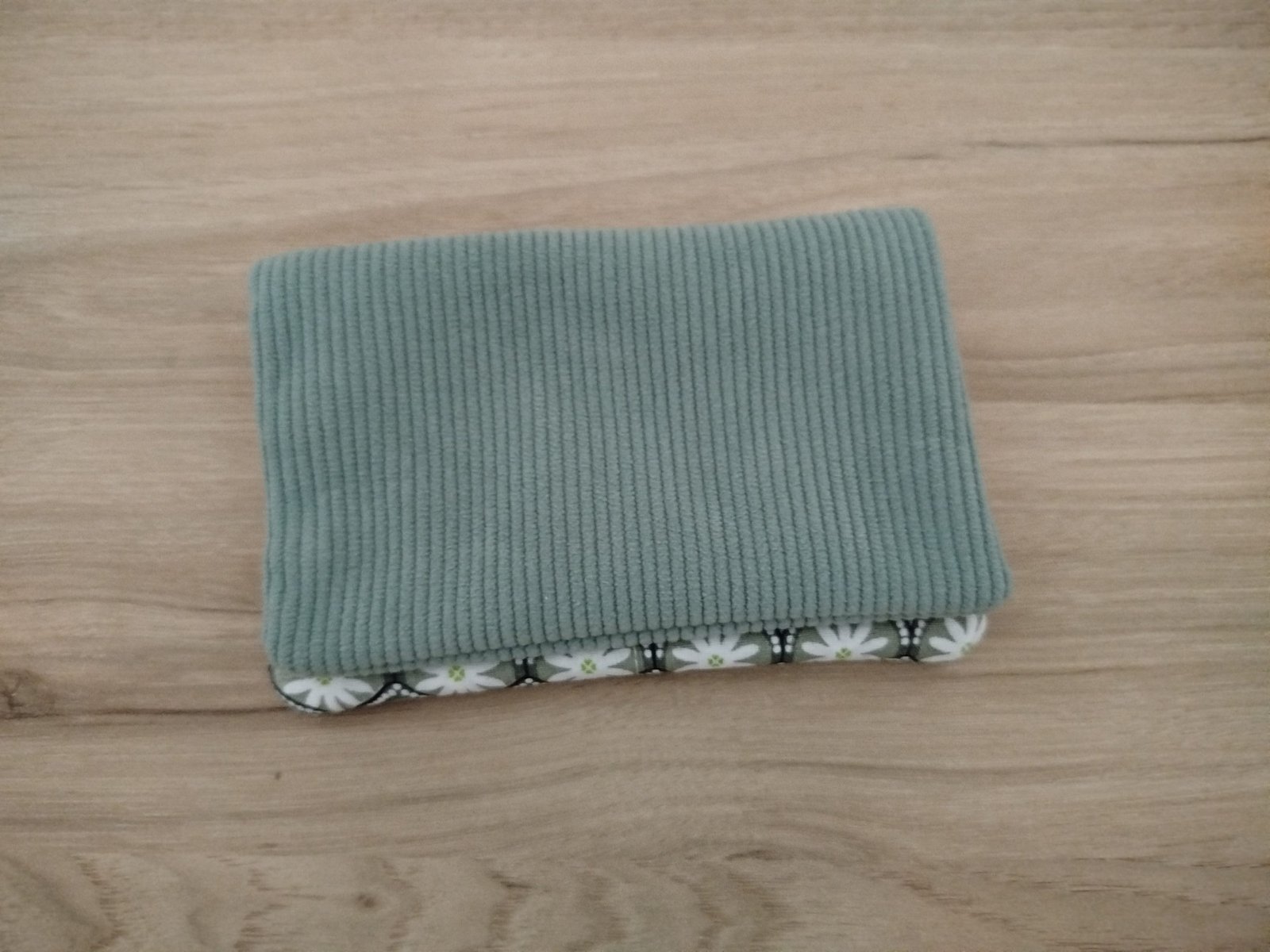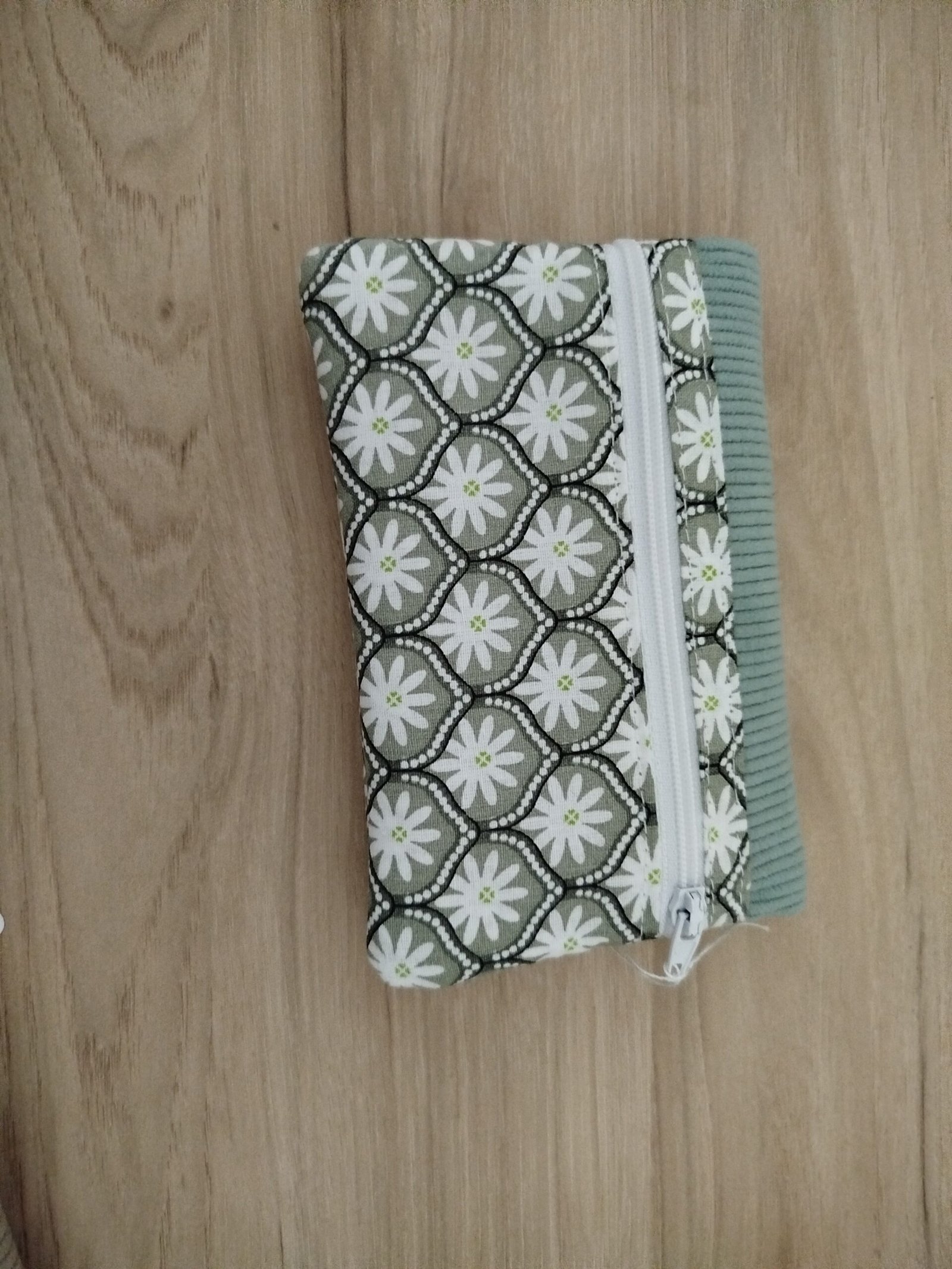 Porte-monnaie velours vert amande et motif géométrique vert