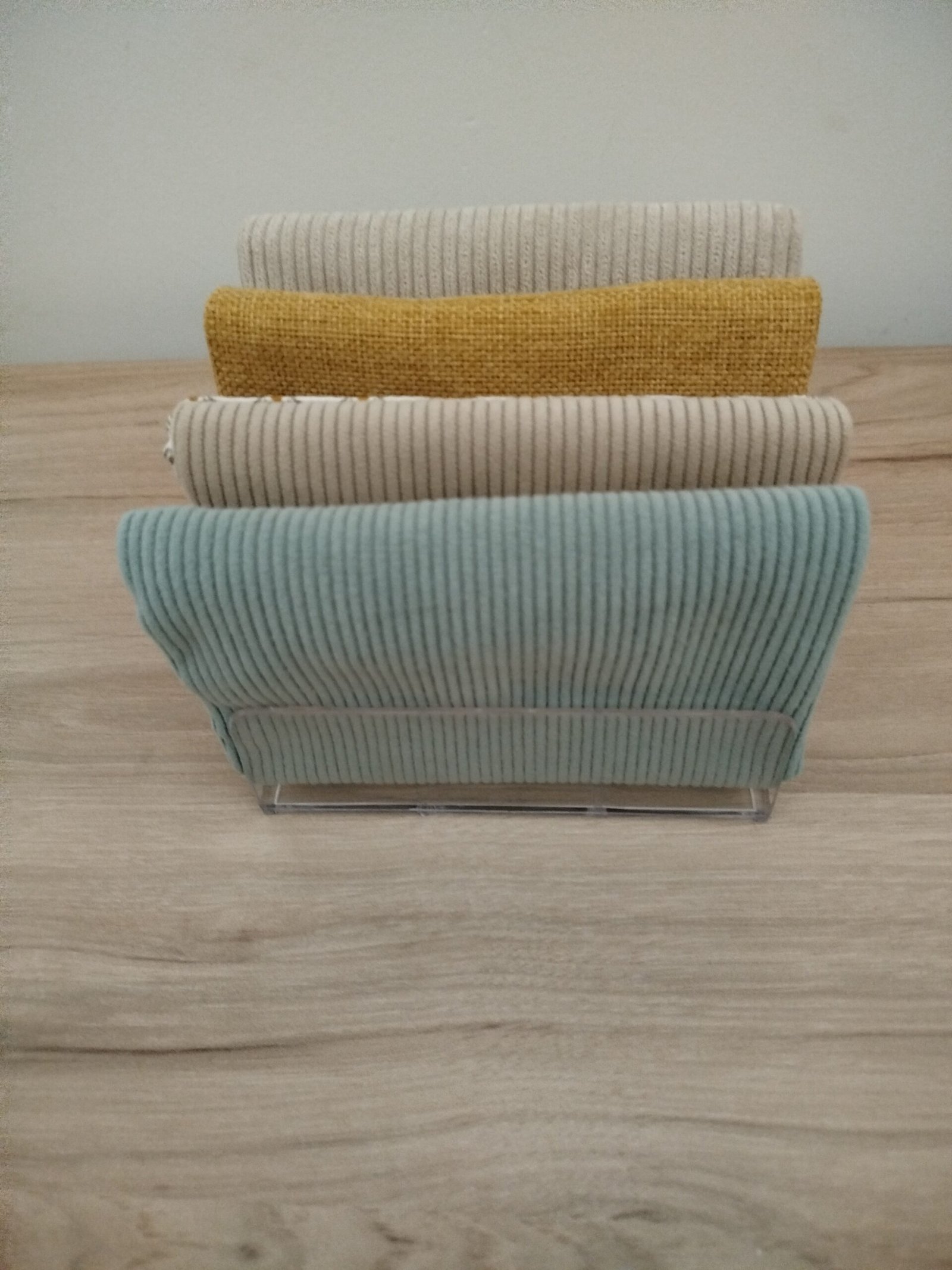 - Tissu principal : velours vert amande et motif géométrique vert